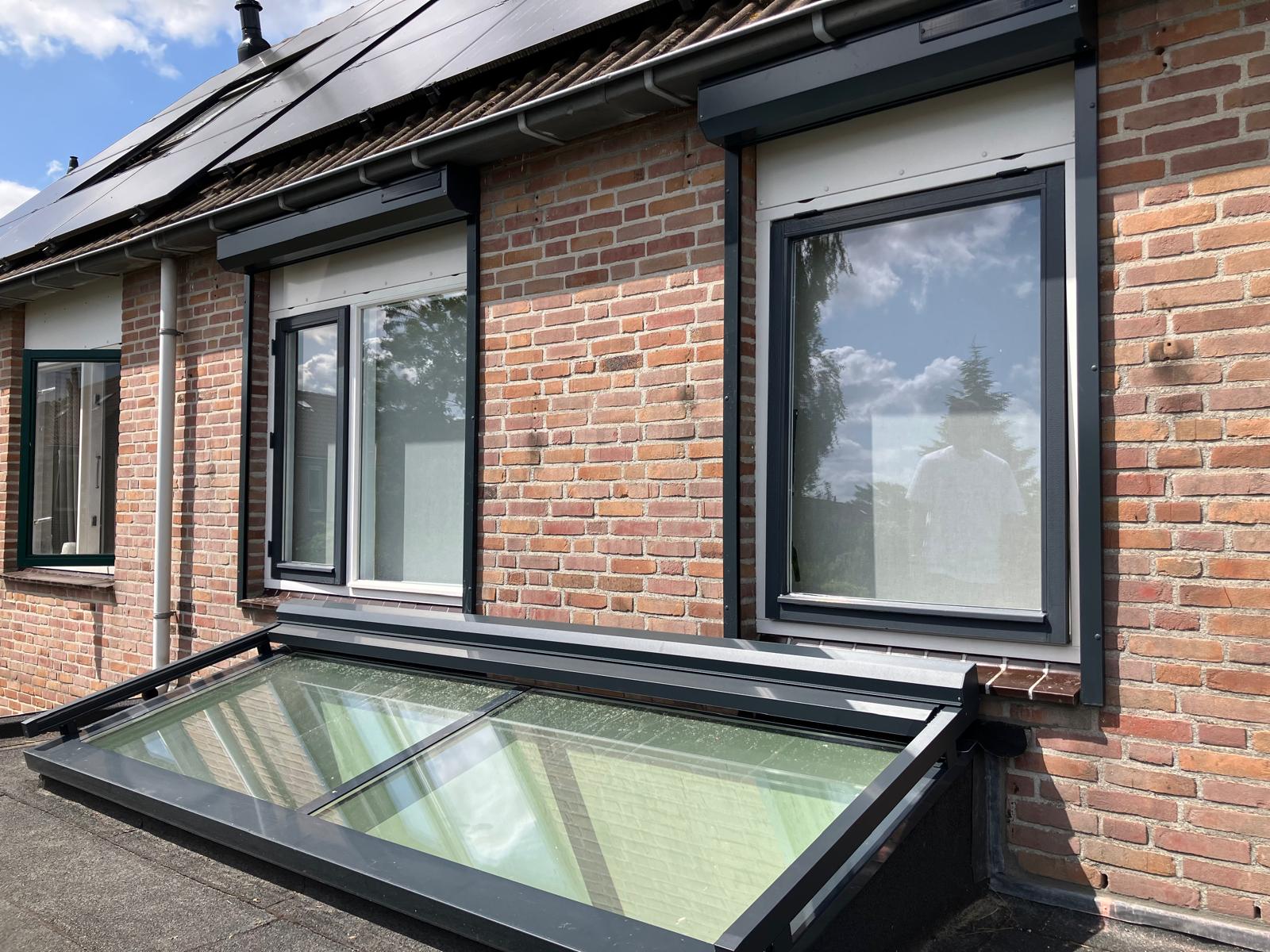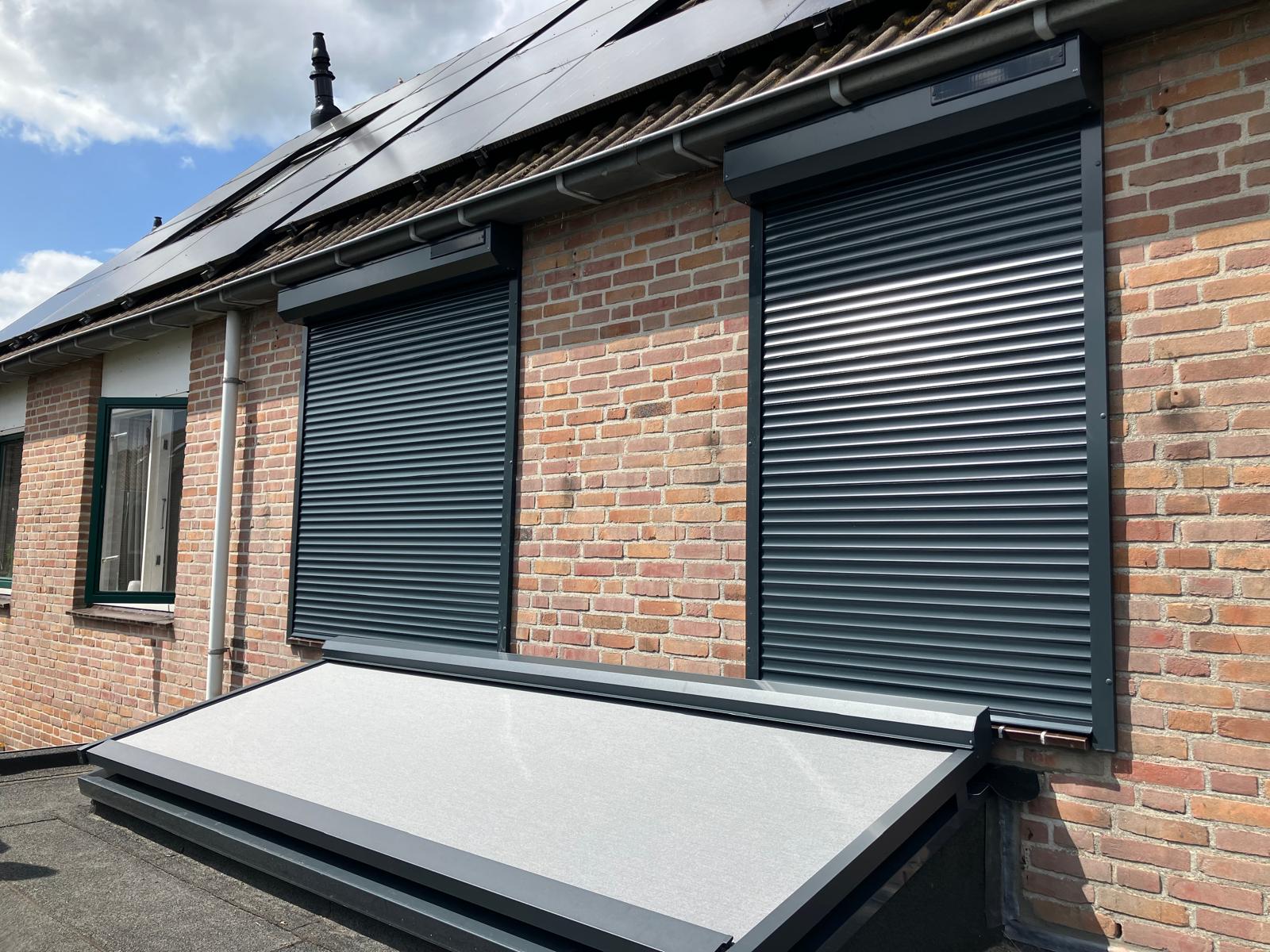 Screen geplaatst op een lichtstraat en solar rolluiken gemonteerd