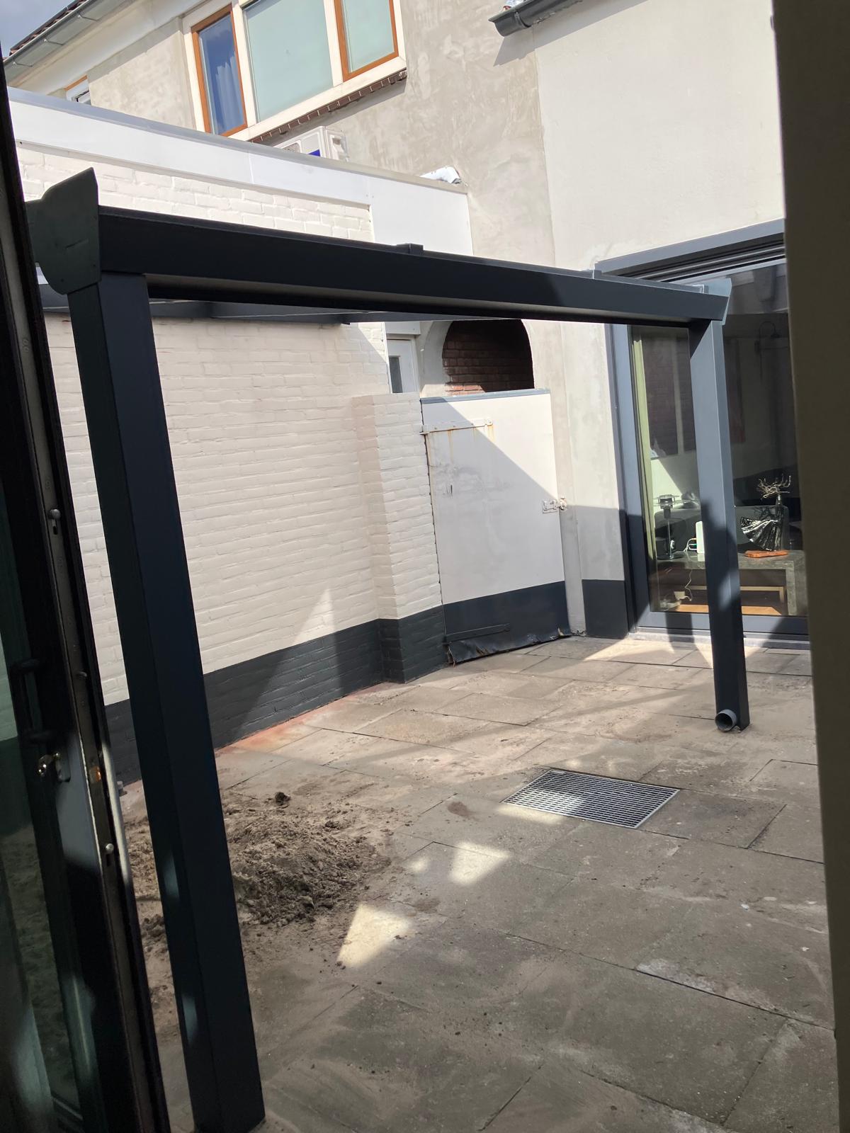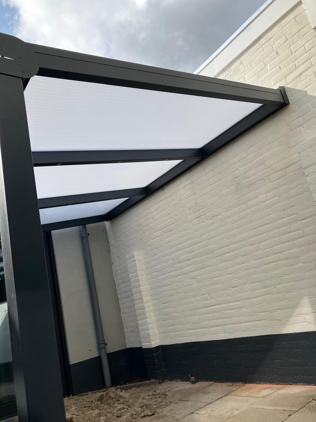 Een overkapping geplaatst met polycarbonaat platen en verlichting in Oosterhout
