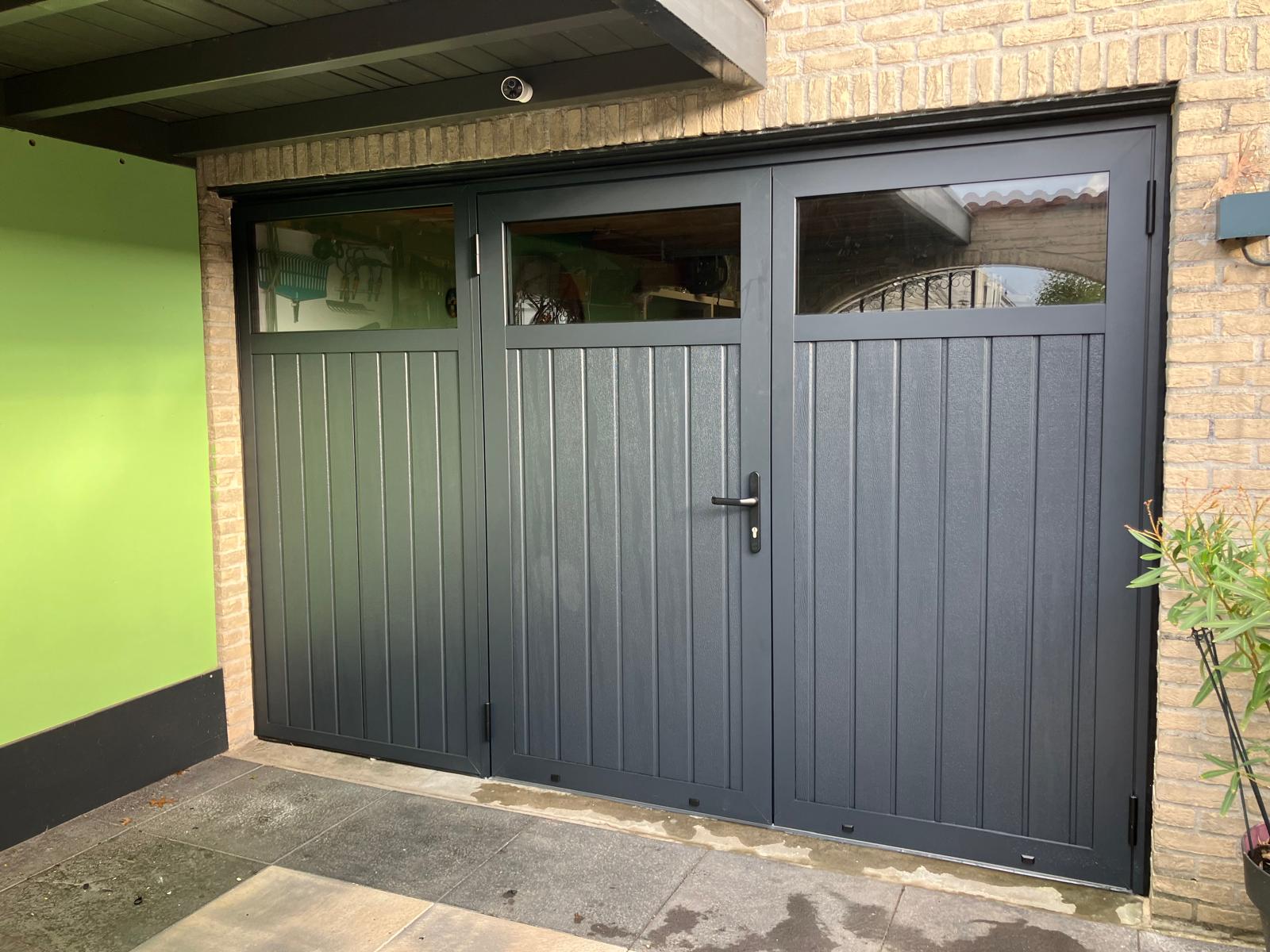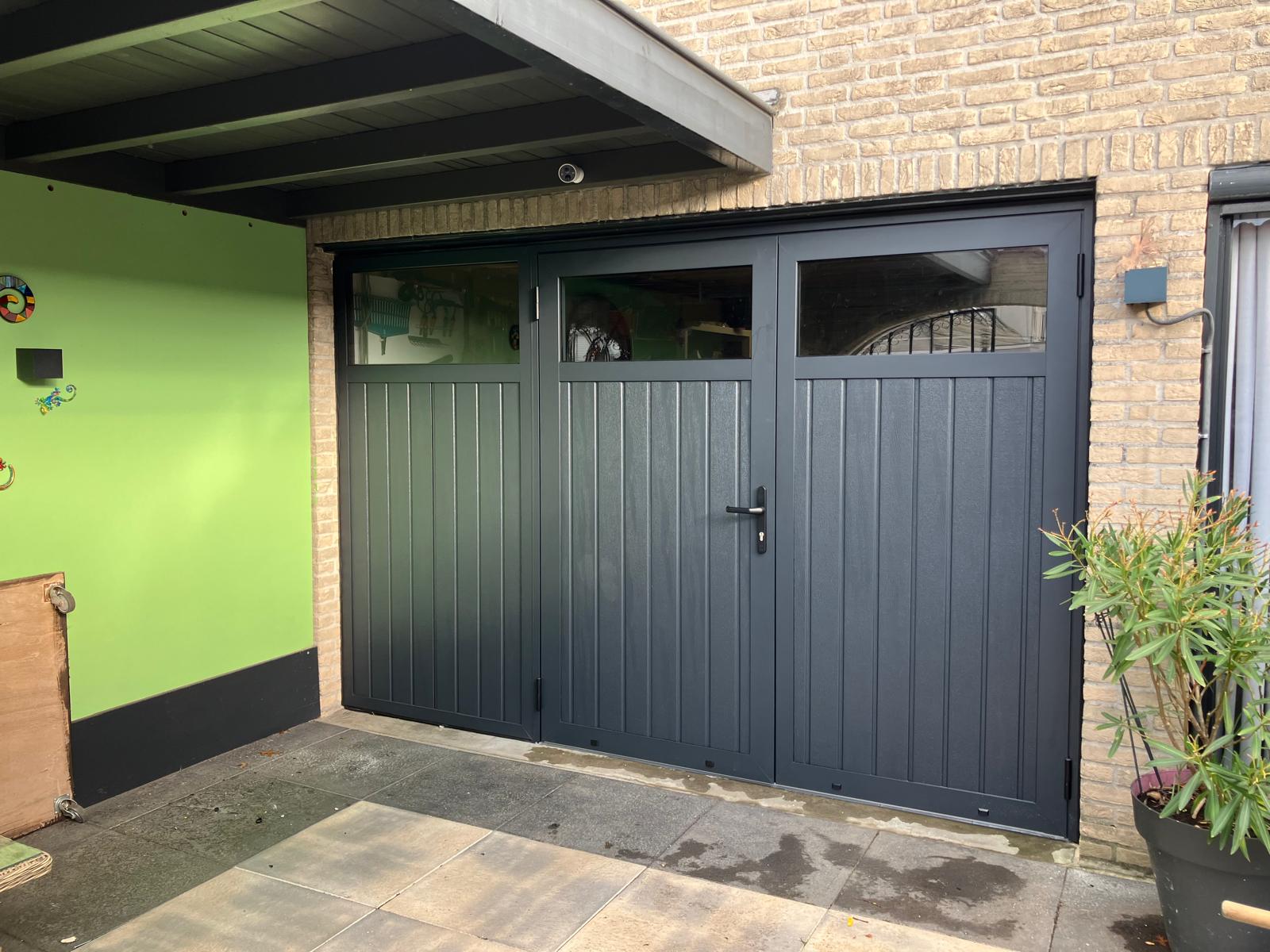 Mooie dubbele garage deuren met extra paneel gemonteerd in Oosterhout